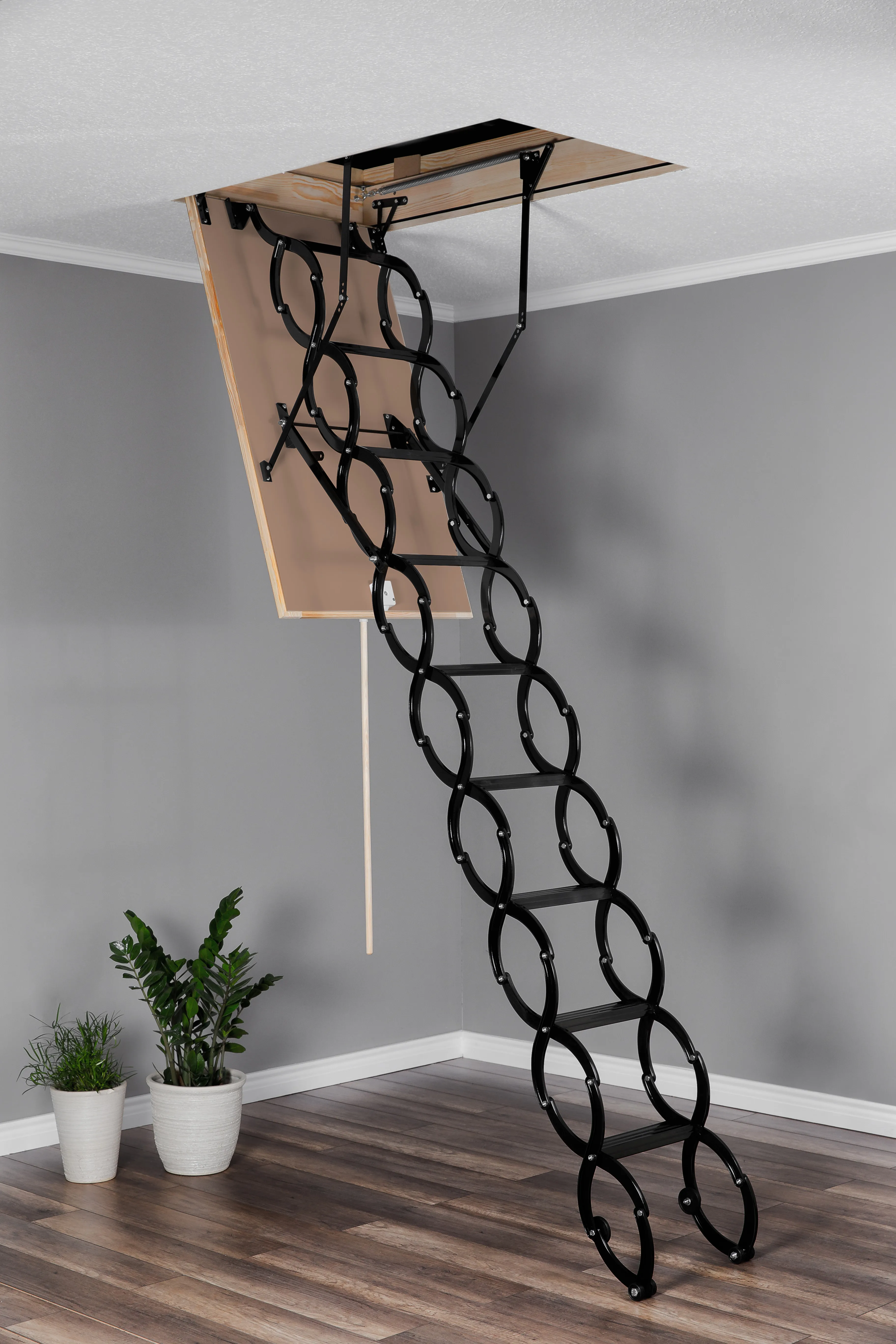-Устойчивость лестницы гарантируют стальные петли-шарниры.