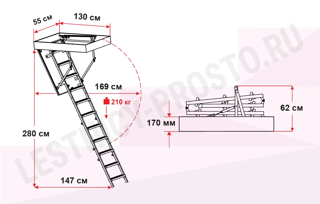 Чердачная лестница OMAN Metal T3 SUPER 55×130 см, h-280 см