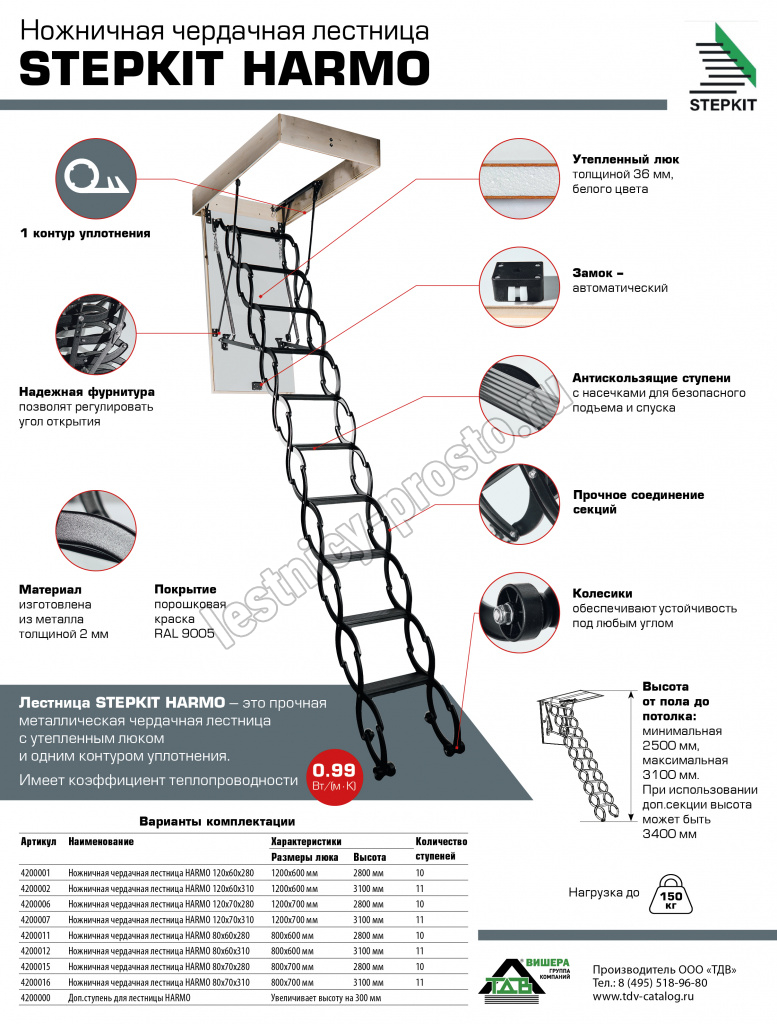 Материалы: корпус и утепленный люк из древесины хвойных пород с теплоизоляцией из пенопласта; ступени и тетивы из металла для максимальной прочности.