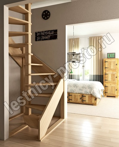 Деревянная межэтажная лестница ЛЕС-1,2ВУ, Сосна