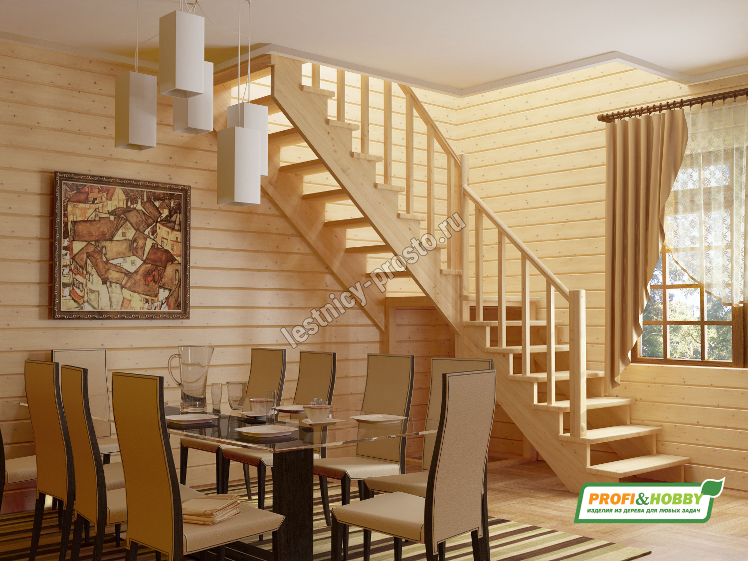 Ступени и поручень лестницы изготовлены из бука, остальные элементы из сосны.