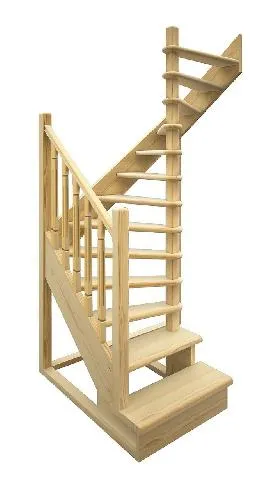 Базовый комплект включает в себя деревянные элементы лестницы и ограждения без какого-либо покрытия.