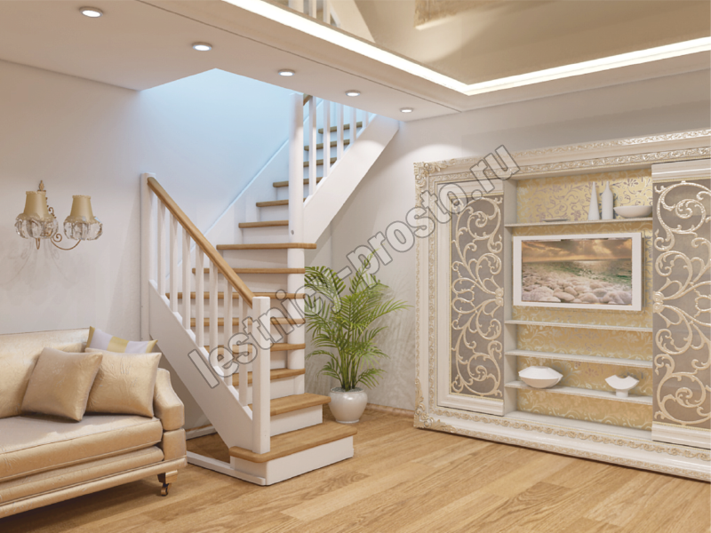 Базовый комплект включает в себя деревянные элементы лестницы с подступенками и ограждения без какого-либо покрытия.