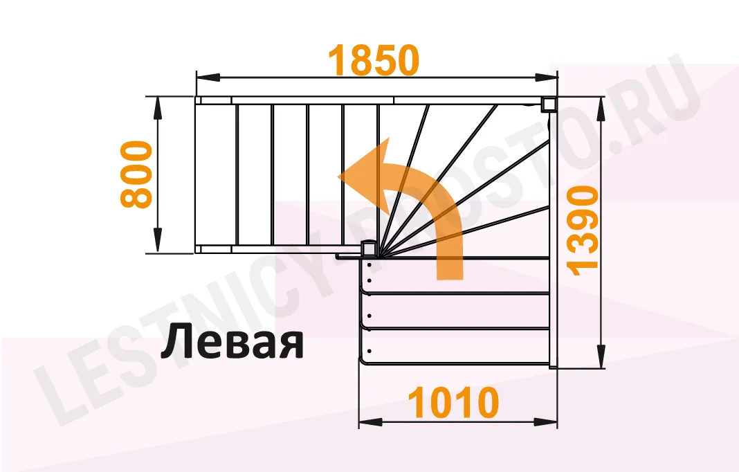 Схема лестницы ЛС-92М/3 с поворотом налево
