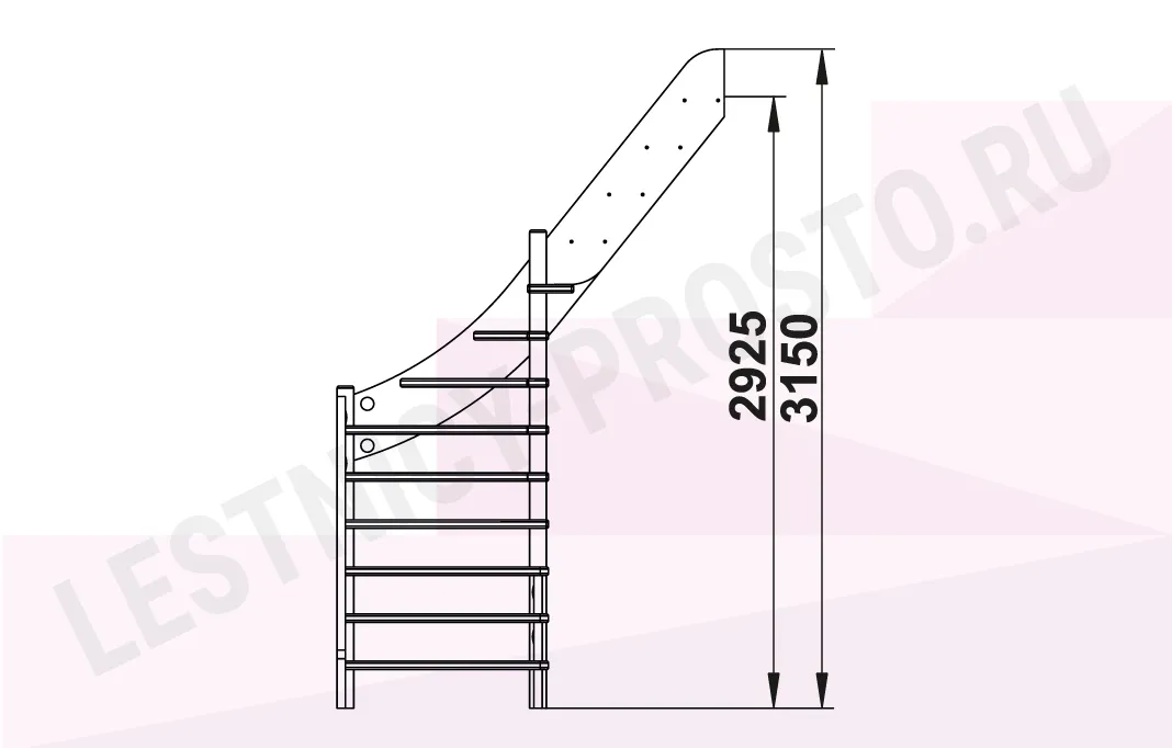 Высота лестницы 2925 - 3150 мм