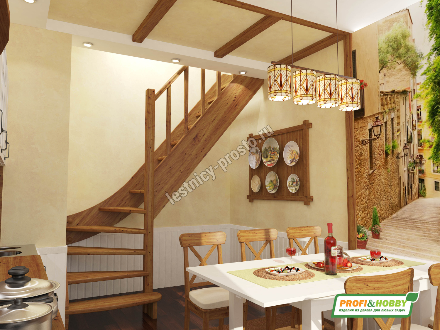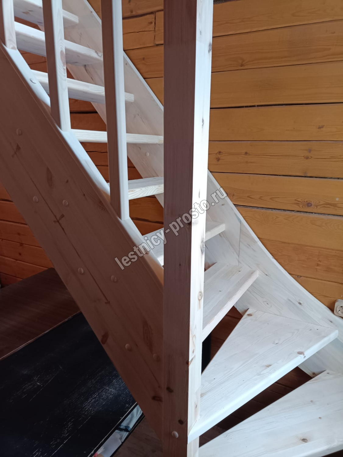 Базовый комплект включает в себя деревянные элементы лестницы и ограждения без какого-либо покрытия.