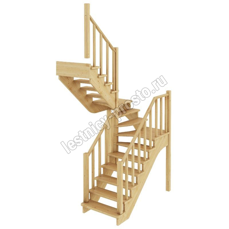 Базовый комплект включает в себя деревянные элементы лестницы и ограждения без какого-либо покрытия.
