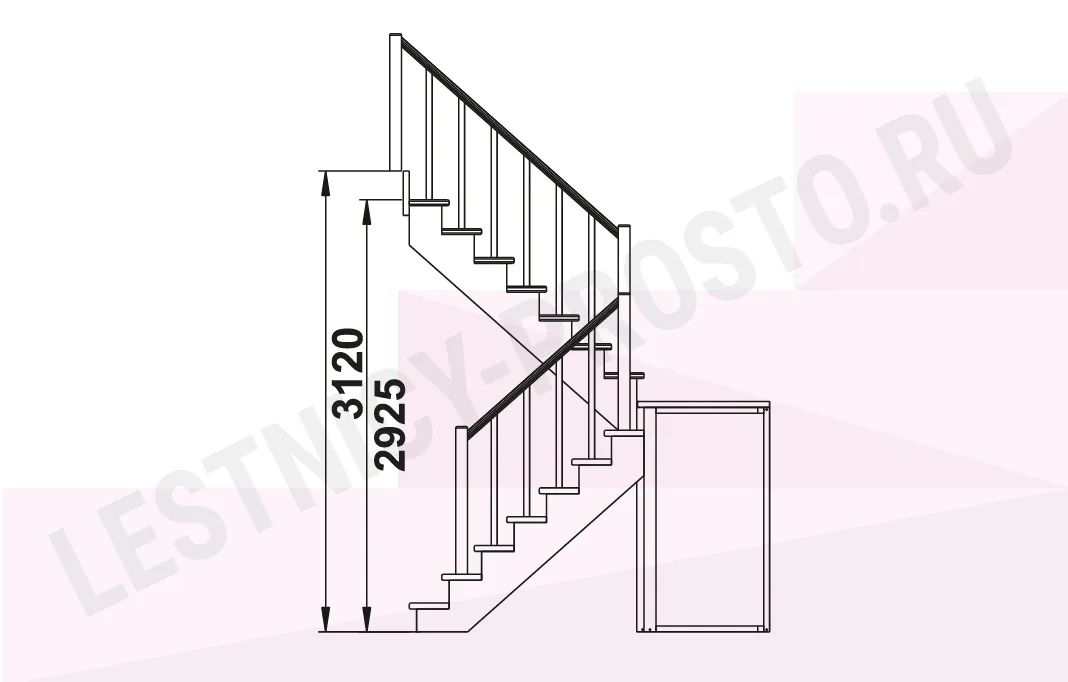 Базовый комплект включает в себя элементы лестницы с подступёнками и ограждения без какого-либо покрытия.