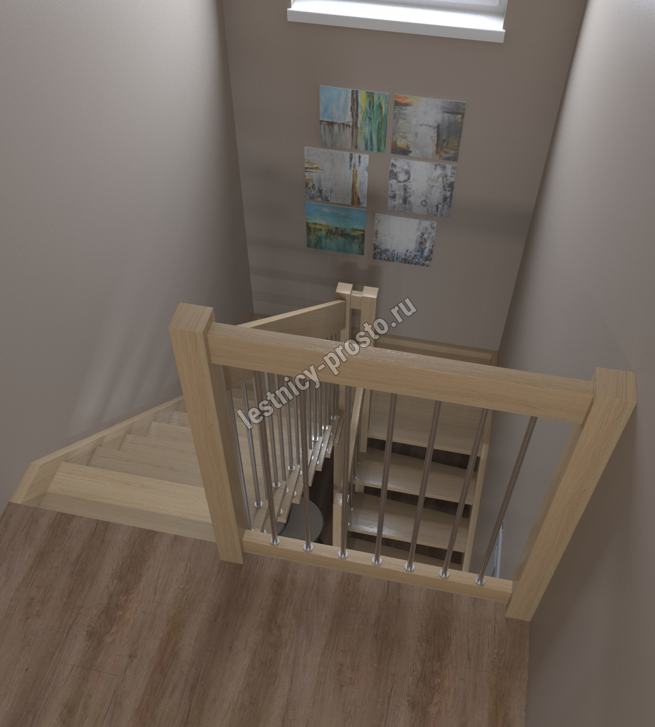 Лестница Prosto Console п-образная забежная, ясень h300 см