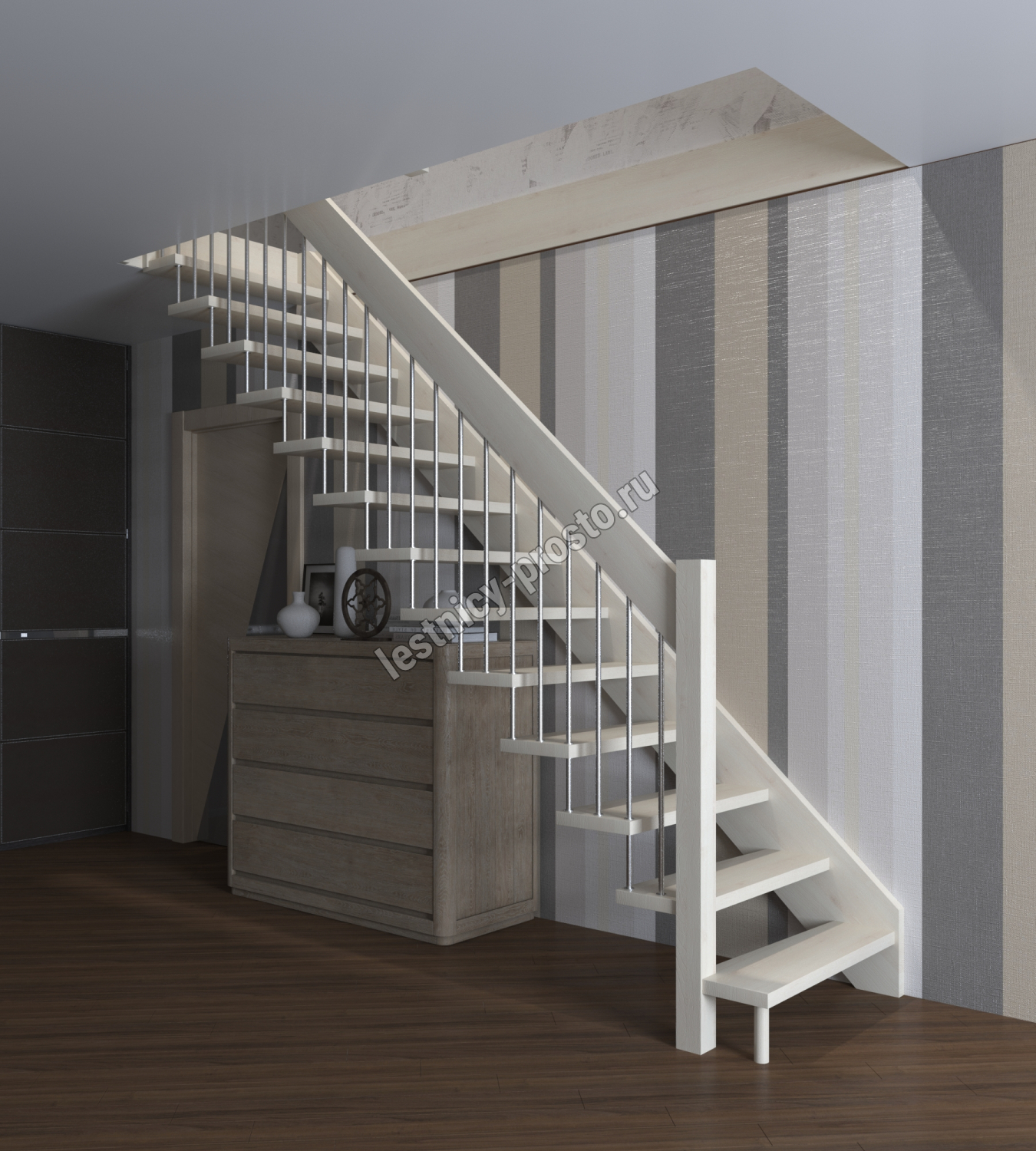 Элегантная современная лестница из сосны.