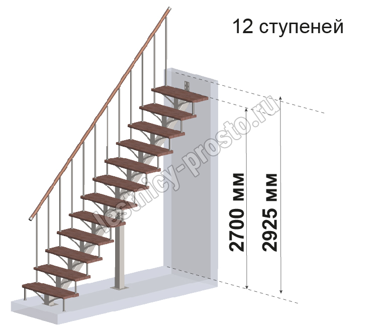 Комплект для лестницы на металлокаркасе PROSTO MONO из 12 ступеней.