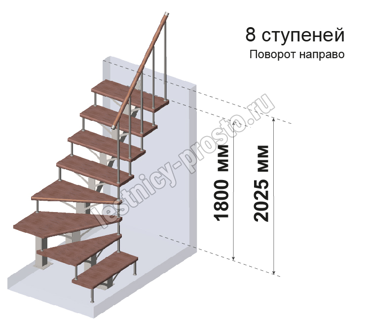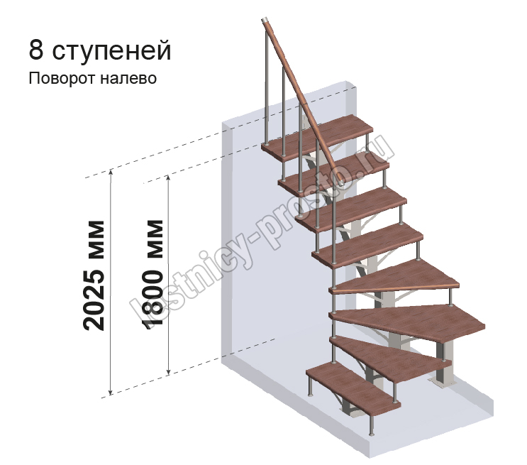Комплект ограждений для Г-образной лестницы PROSTO MONO из 8 ступеней.