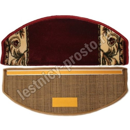 Ковровые накладки защищают ступени лестницы от изнашивания и служат безопасности, обеспечивая нескользящую поверхность. Края изделия окантованы. Внутренняя сторона ковровой ступени имеет специальные липкие накладки, для фиксации на ступеня лестницы.