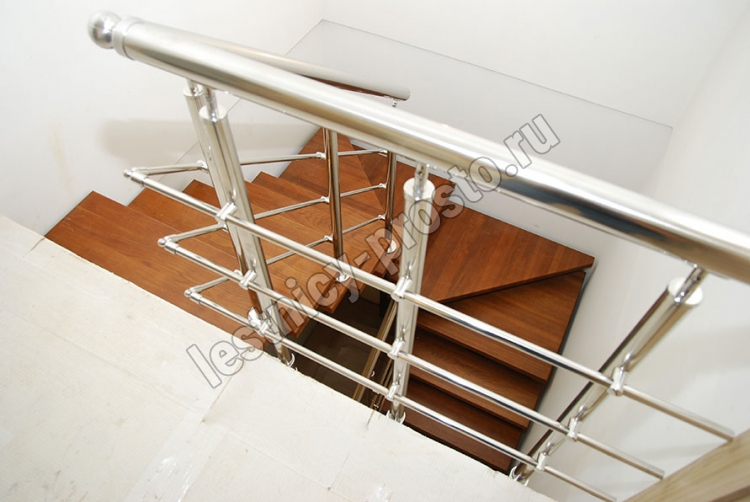 Основой лестницы Prosto Double 50×100 служит усиленный двойной металлический каркас из профильной трубы 50×100 мм (включая 4 опоры на пол под поворотом), который обеспечивает надёжную прочность конструкции и современный актуальный дизайн. Данный вариант лестницы предполагает поворот на 180° через забежные ступени. Под заказ возможно изготовление каркаса под поворотную площадку.