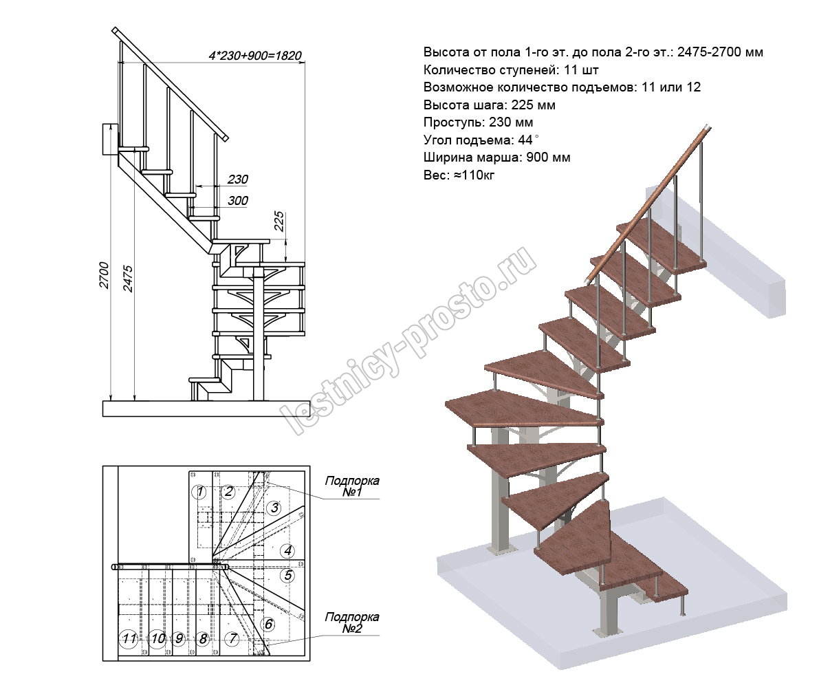 Высота лестницы 2475 - 2700 (11 ступеней) мм