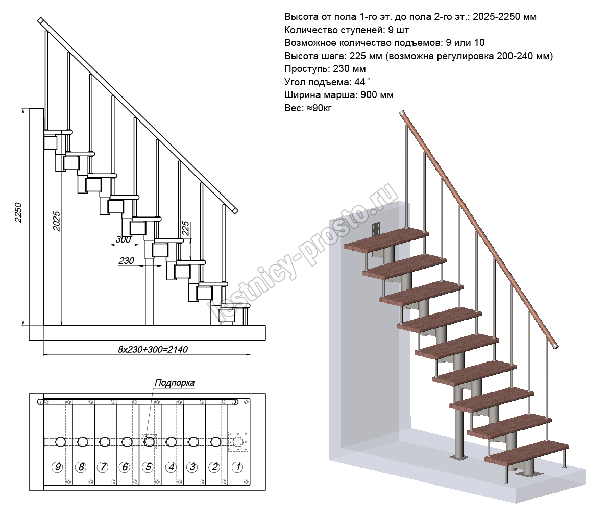 Поставляется в разобранном виде. Лестницу не сложно собрать и установить самостоятельно, при наличии базовых навыков работы с необходимыми инструментами. Если хотите сэкономить время и силы - вы можете заказать монтаж лестницы нашими специалистами.Упаковка: