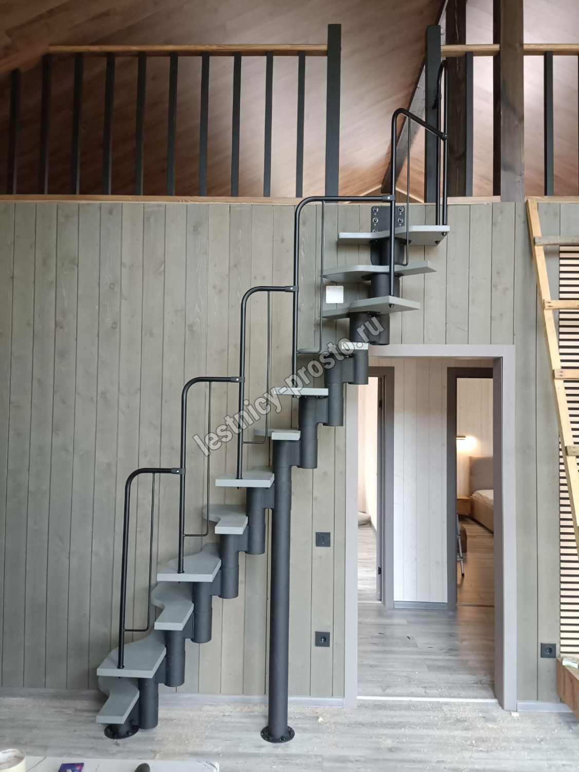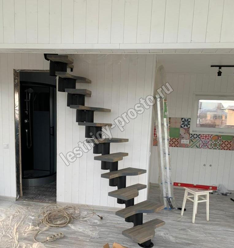 Лестница Prosto Urban Black гусиный шаг 700 мм, h234-336 см (13 ступеней), ясень
