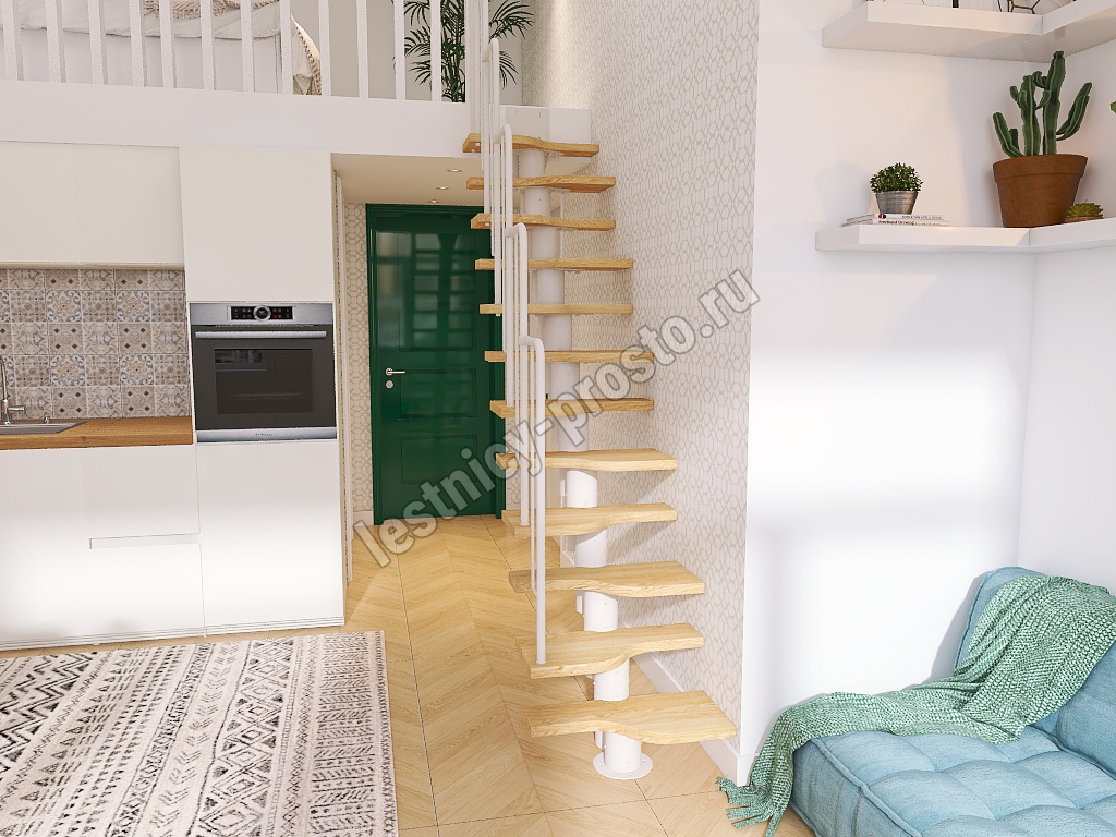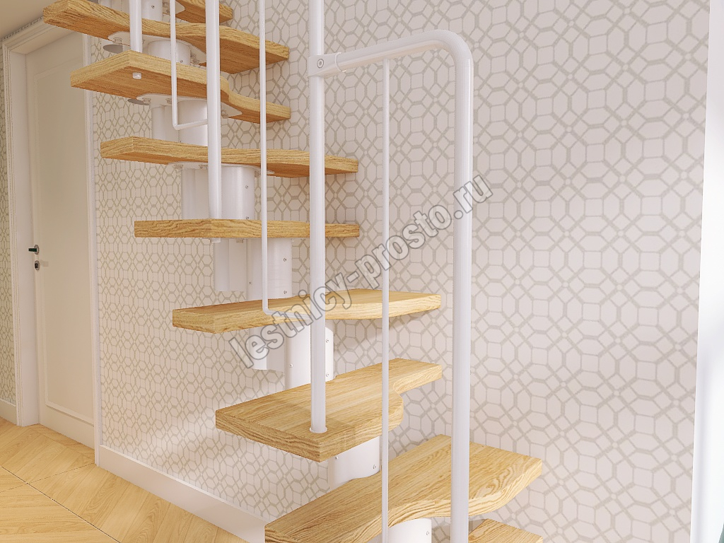 Лестница Prosto Urban White гусиный шаг 700 мм, h234-336 см (13 ступеней), ясень