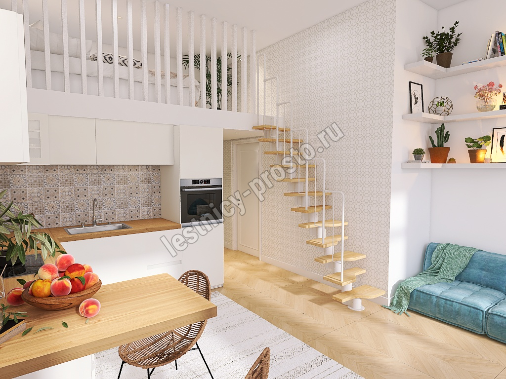 Лестница Prosto Urban White гусиный шаг 700 мм, h234-336 см (13 ступеней), берёза мультиплекс