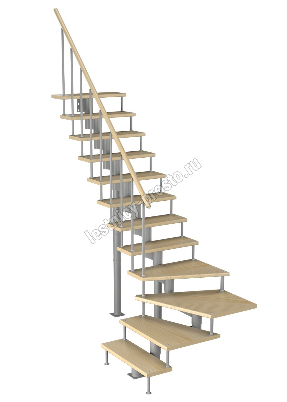 Модульная лестница Фаворит 225 2700-2820, Серый, Бук, Нержавеющая сталь