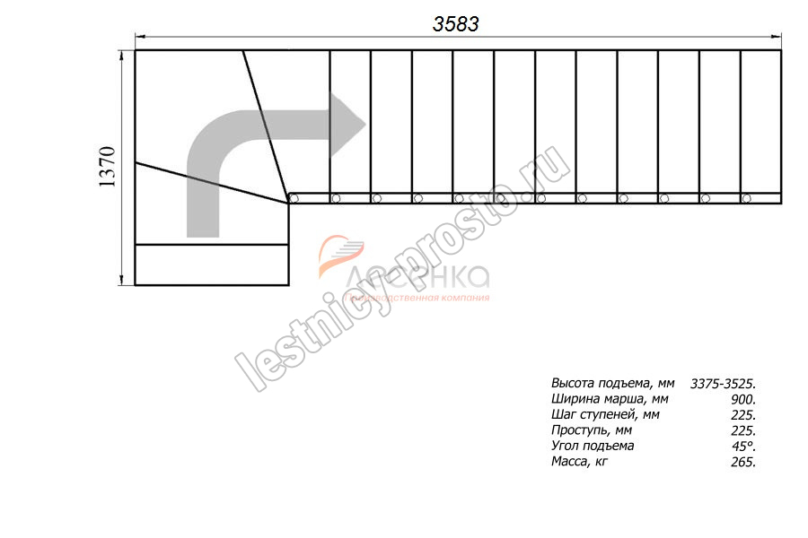 Модульная лестница Фаворит 225 3375-3525, Белый, Лиственница, Крашеная