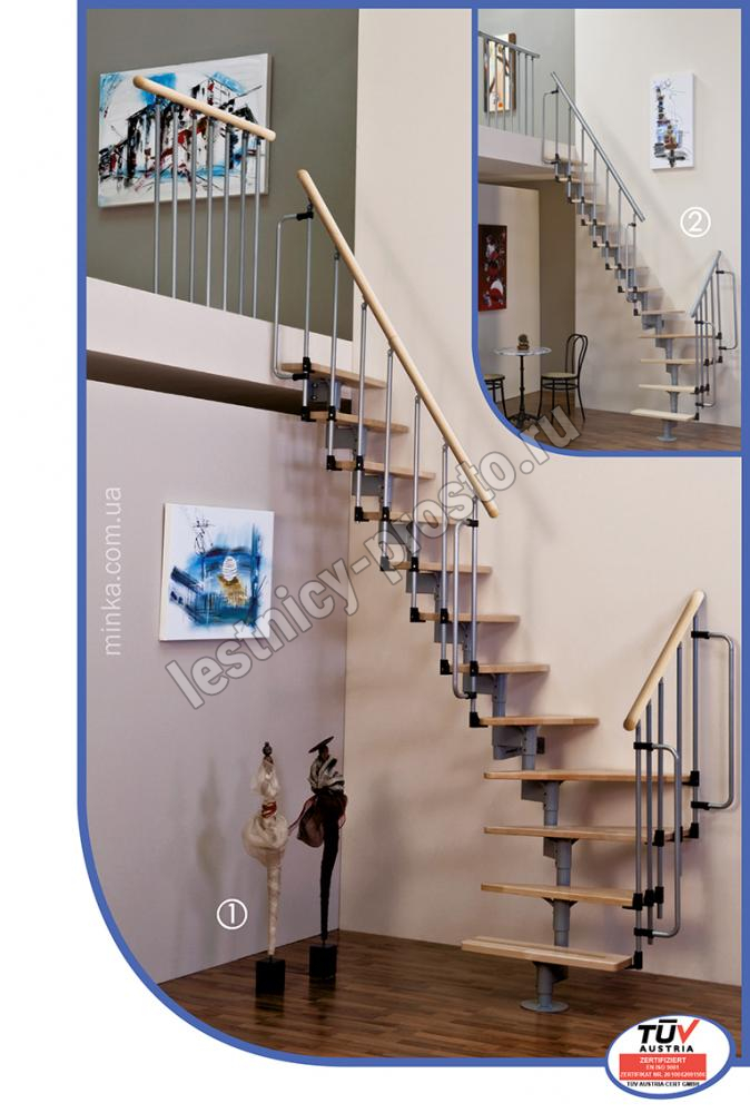 Joker 600: ширина ступени - 600 мм, ступени из берёзы, максимальная высота 2800 мм, поручень в цвет металлокаркаса