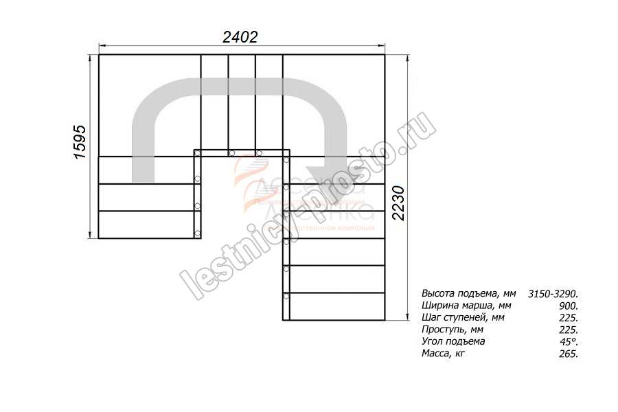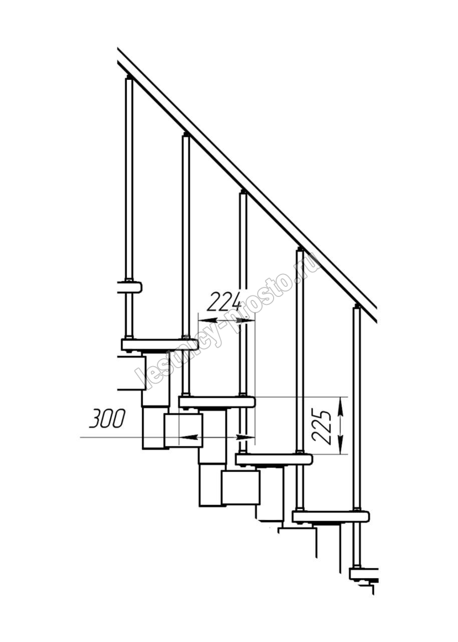 Модульная лестница Комфорт 225 3150-3290, Серый, Бук, Нержавеющая сталь