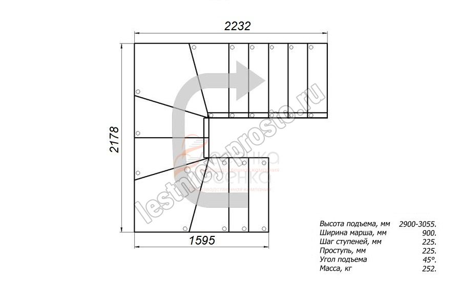 Модульная лестница Спринт 225 2925-3055, Черный, Сосна, Крашеная, Без Ступений
