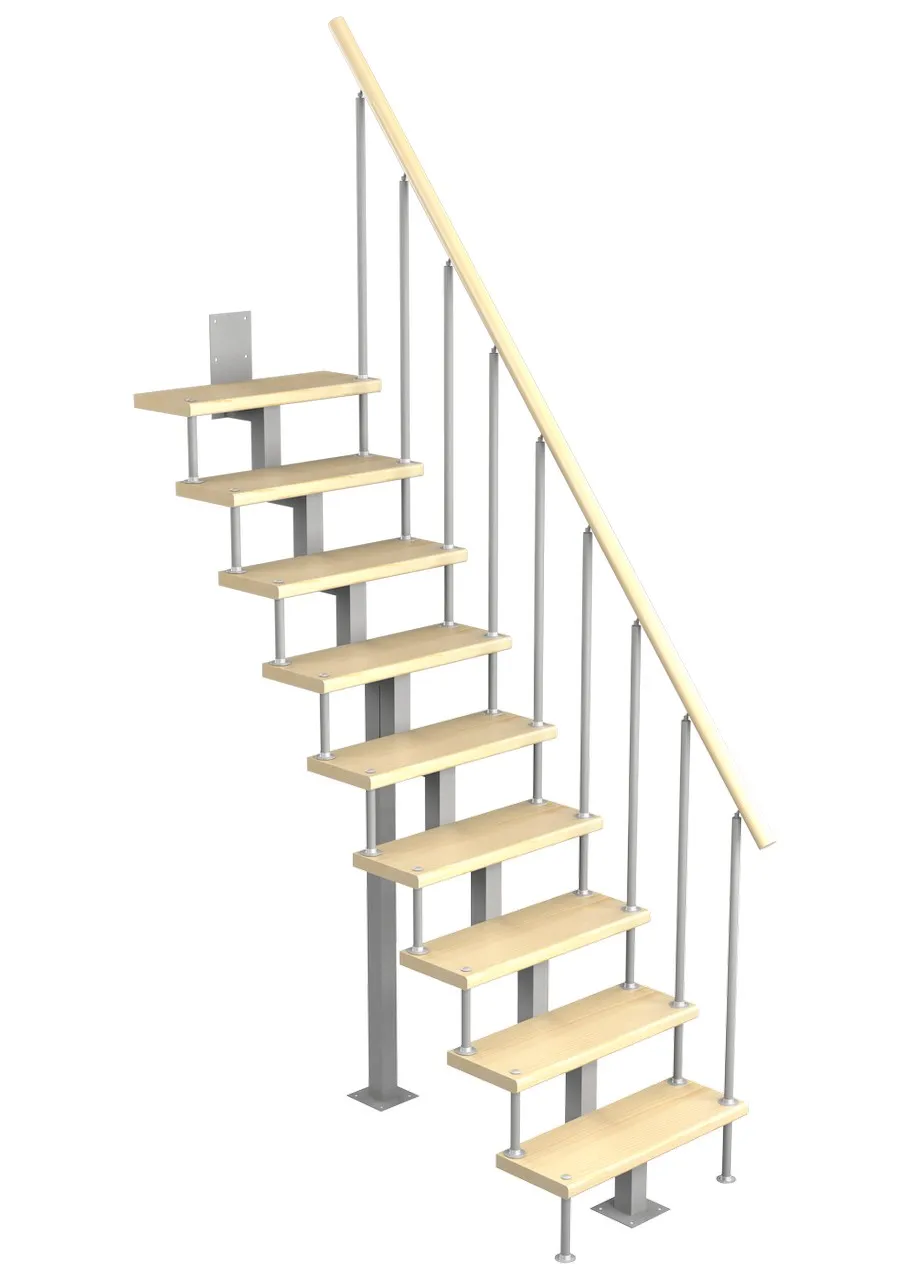 Модульная малогабаритная лестница Эксклюзив 2250-2475, Серый, Бук, Нержавеющая сталь