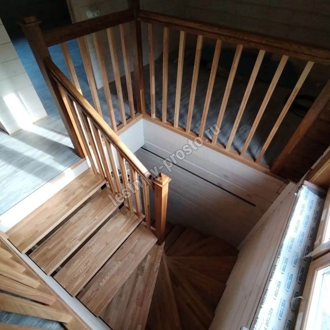 Ступени и ограждения выполнены из срощенного дуба категории АВ.