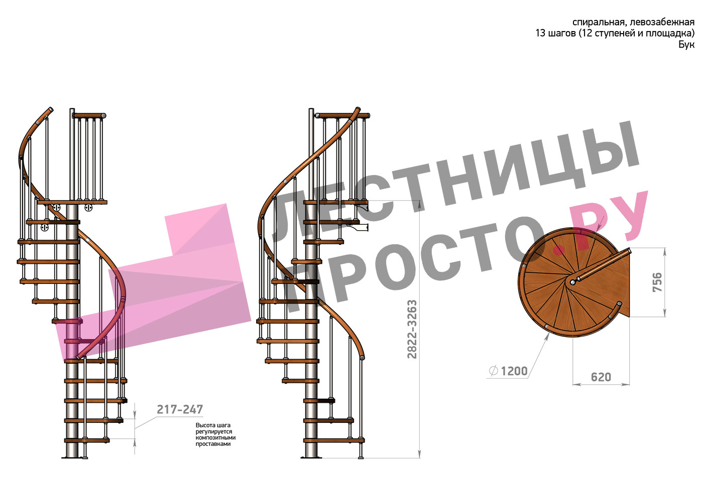 Винтовая лестница Prosto Spiral Black D120см, h282.2-326,3 см, бук |