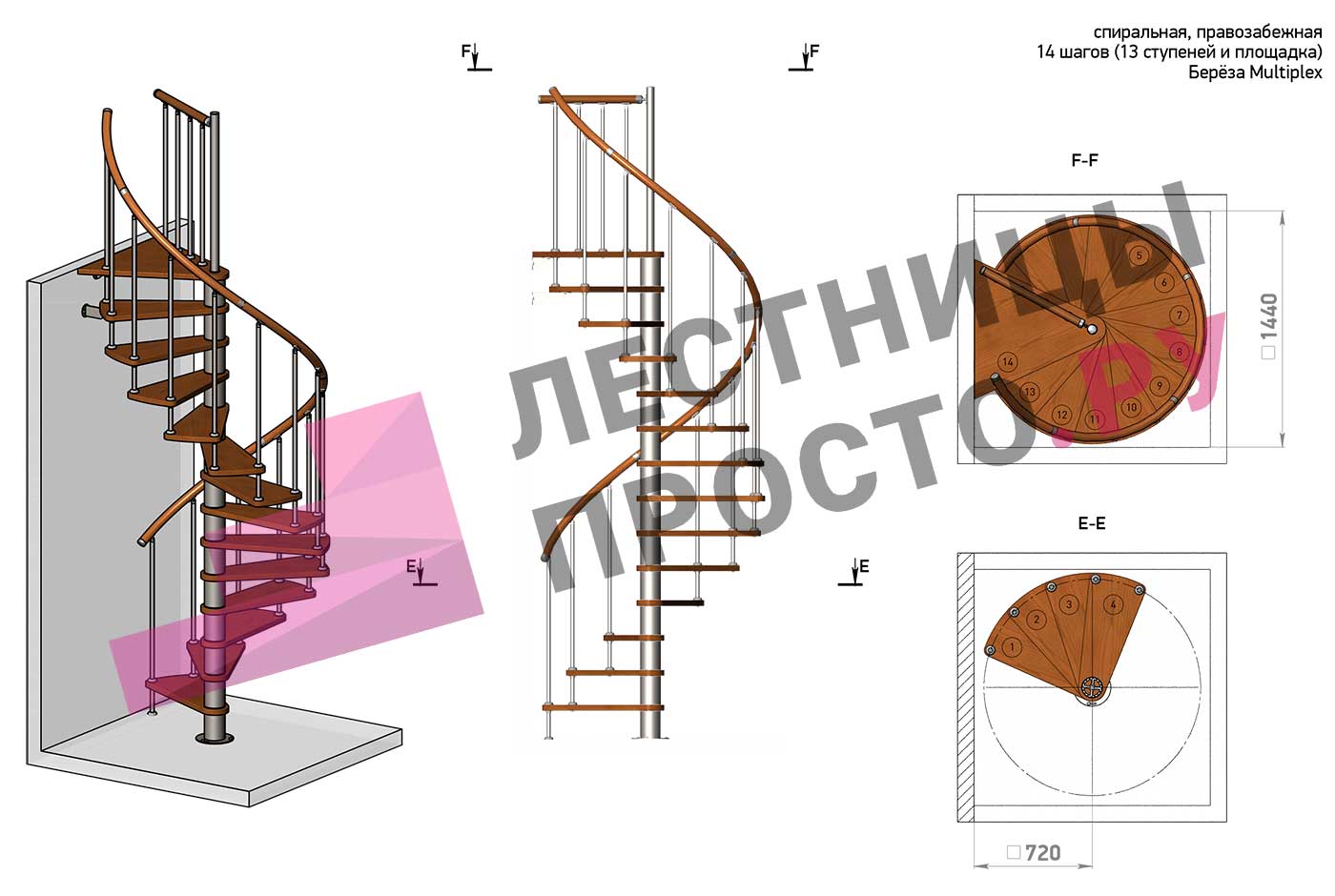 Винтовая лестница Prosto Spiral White D140см, h296.9-338.1 см