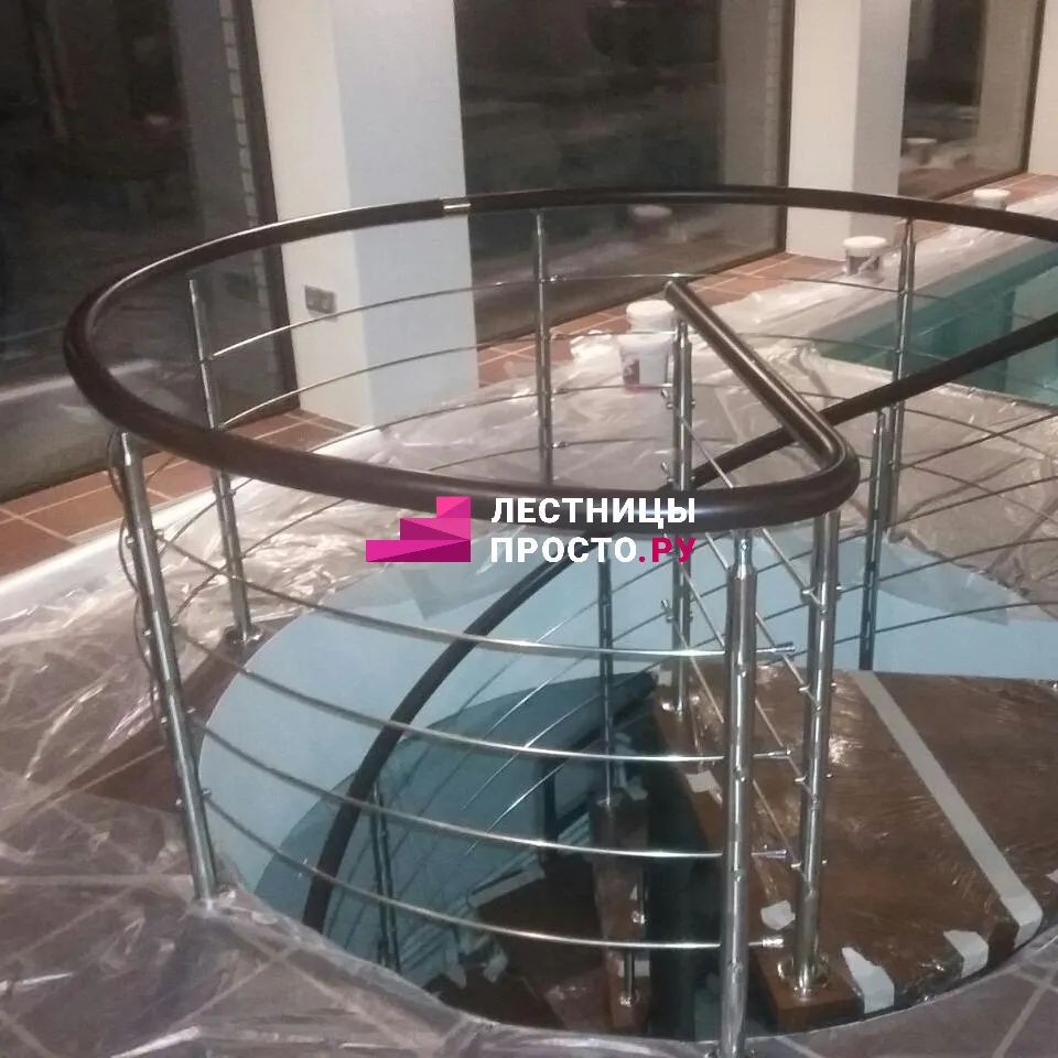 Лестница на центральном каркасе, со стеклом и нержавейкой ЛП 702