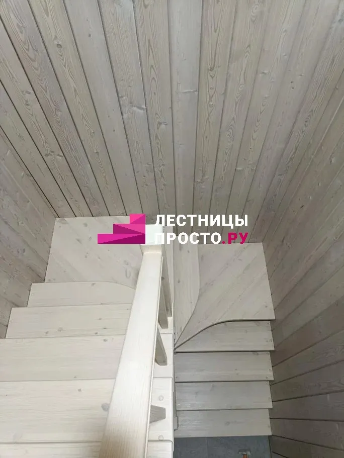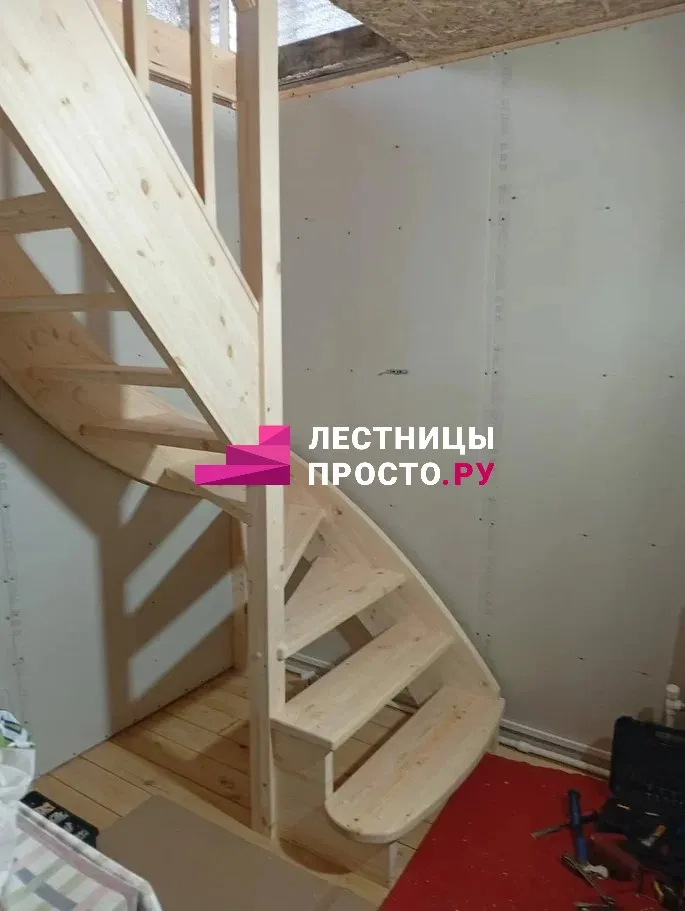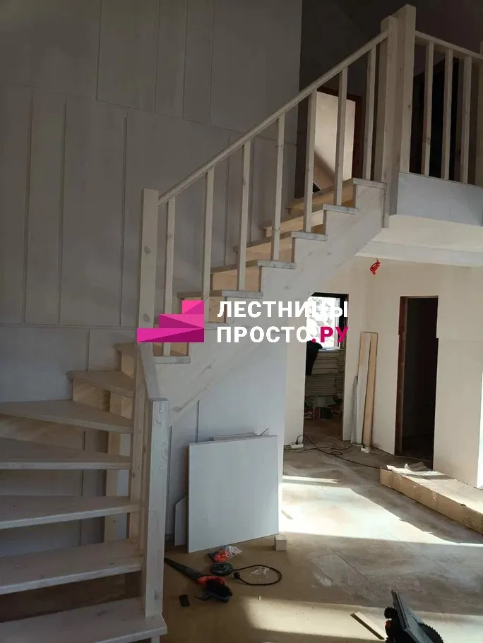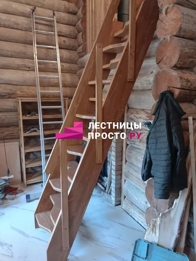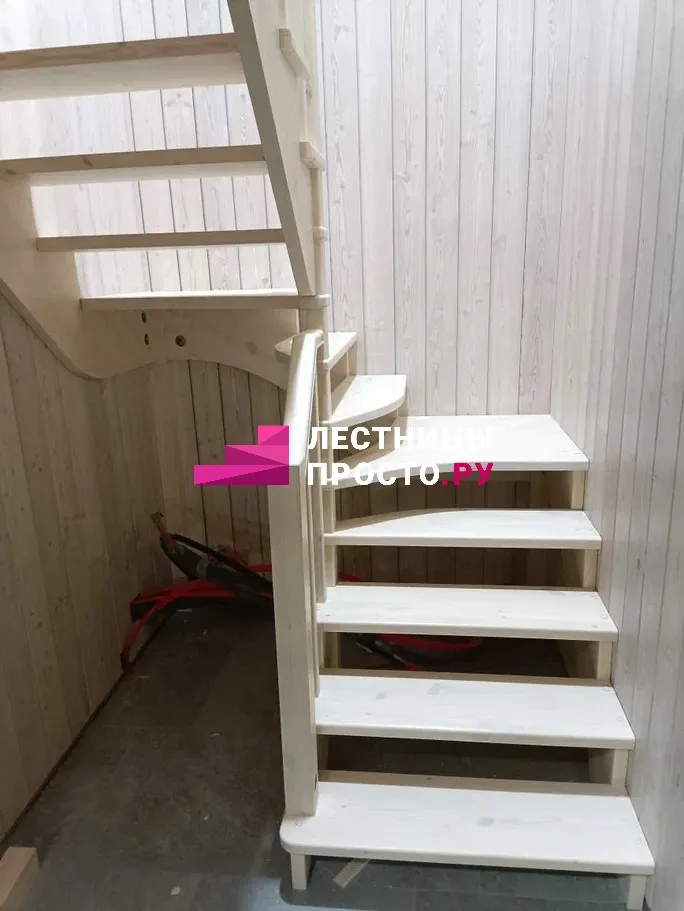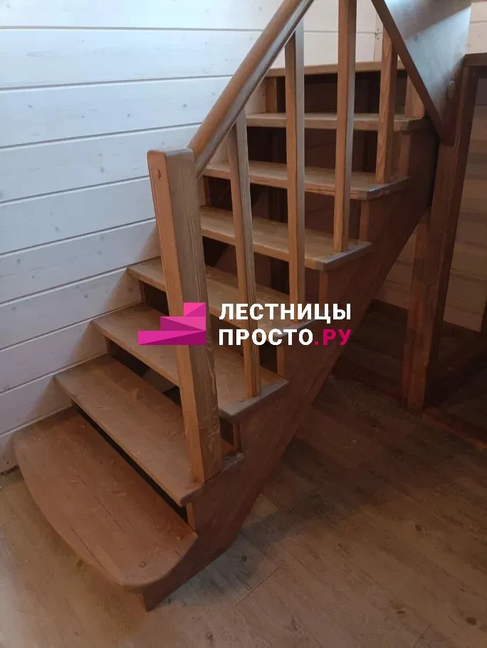 Лестница из сосны с поворотом и подступёнками для частного дома