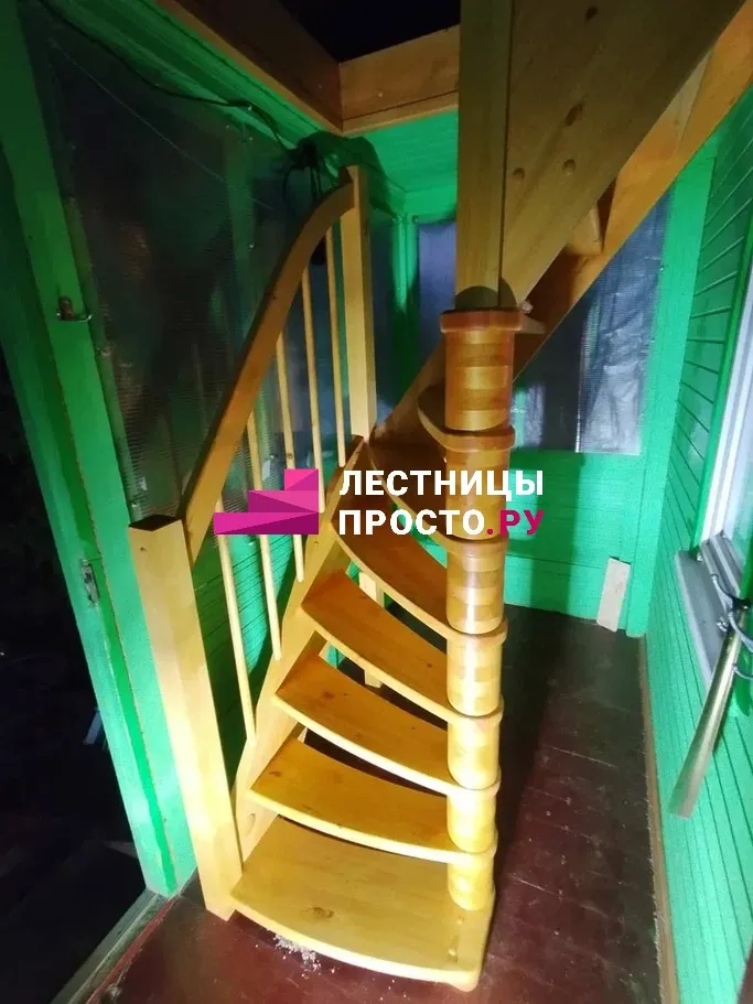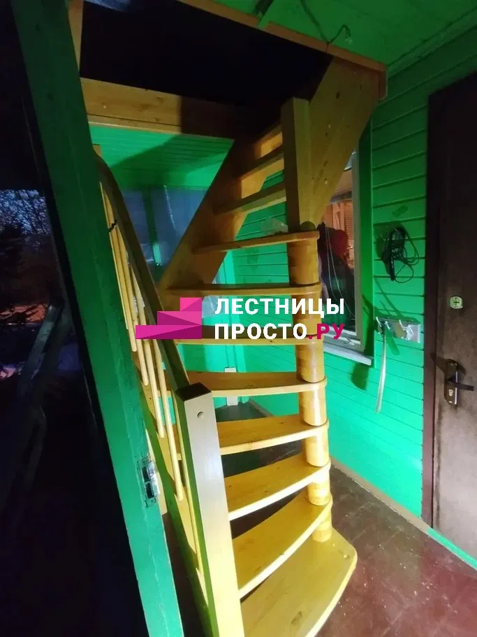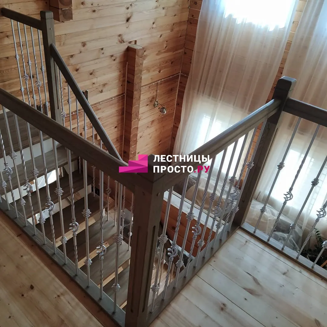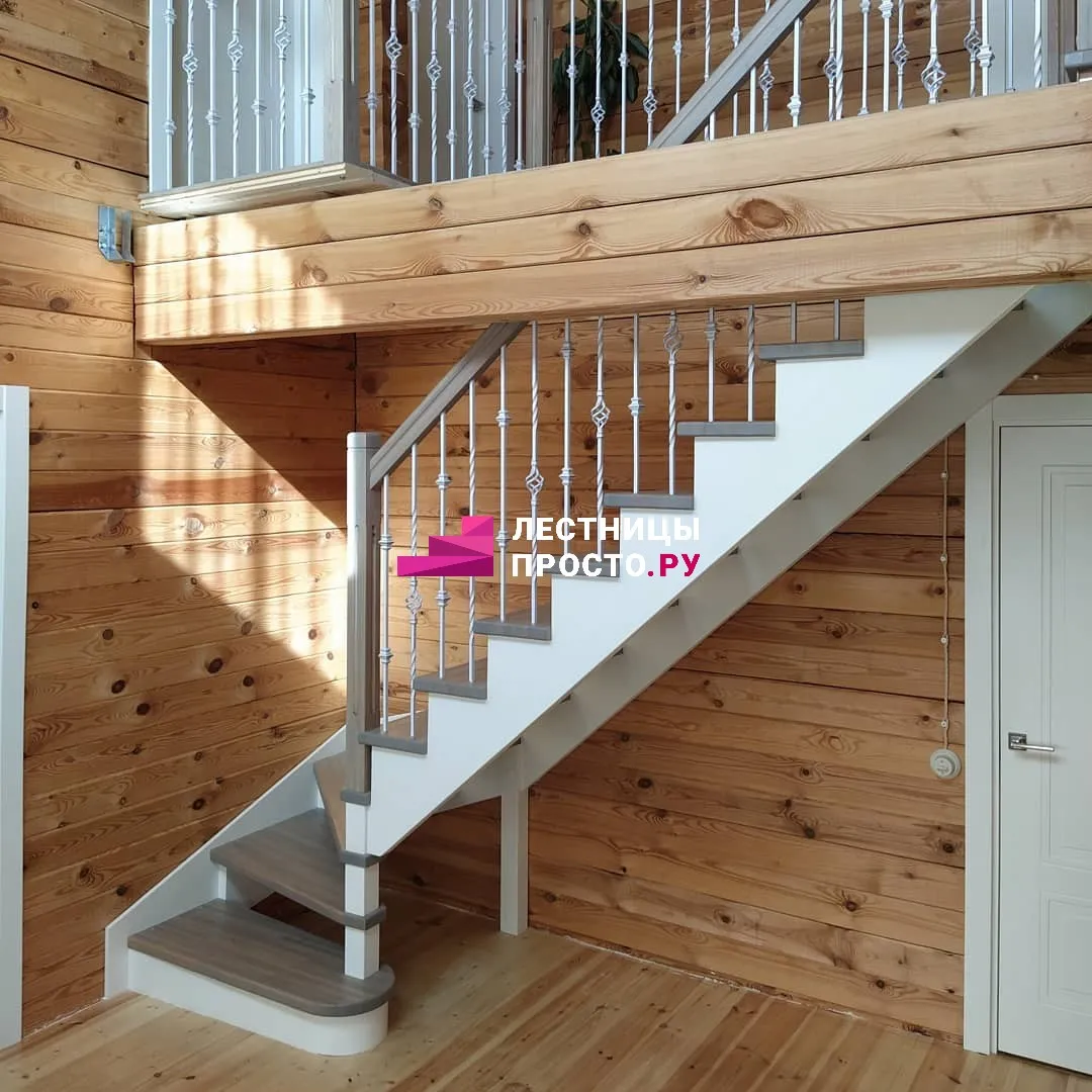 Лестница из сосны с поворотом и подступёнками для частного дома