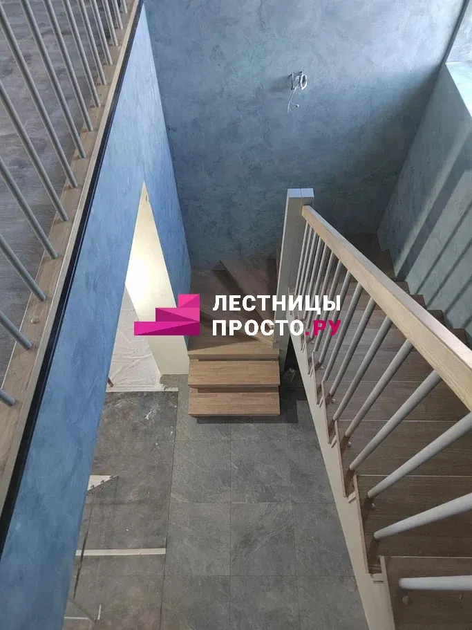 П-образная лестница из березы и ясеня по индивидуальному проекту