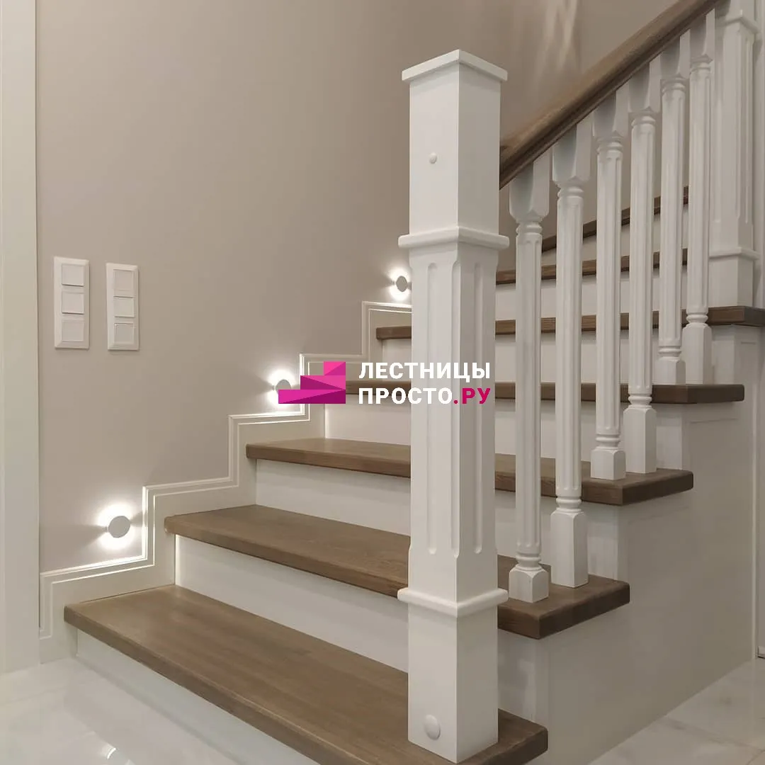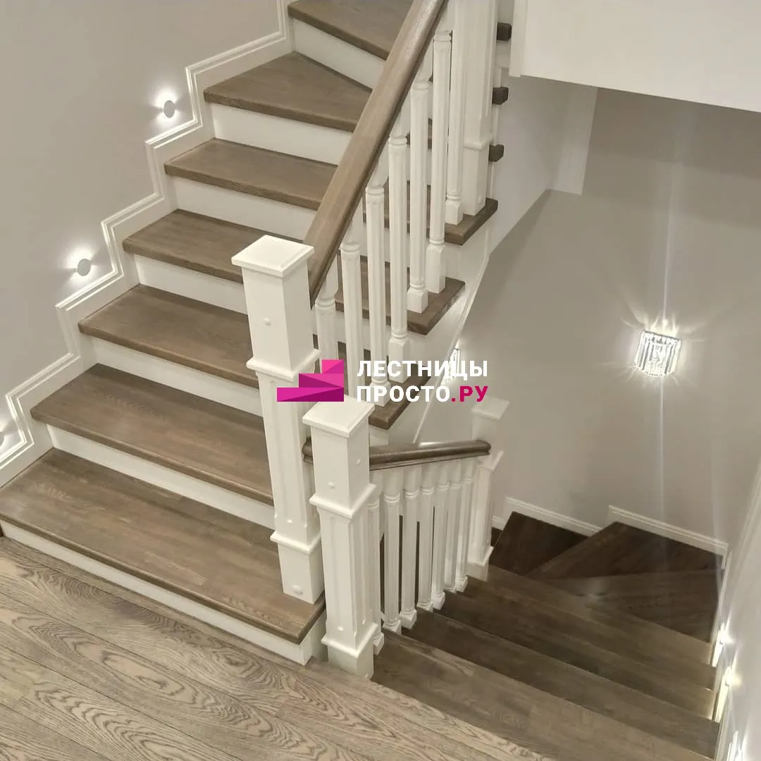 Ступени и поручень выполнены из срощенной лиственницы категории АВ.